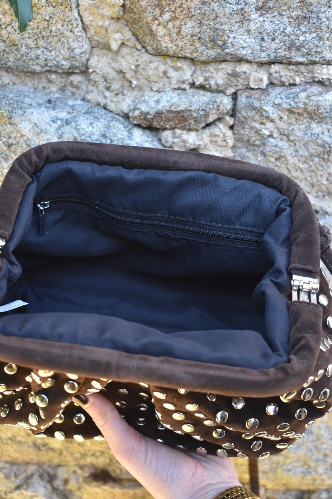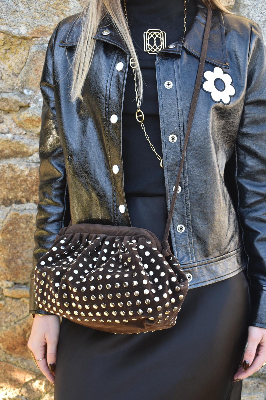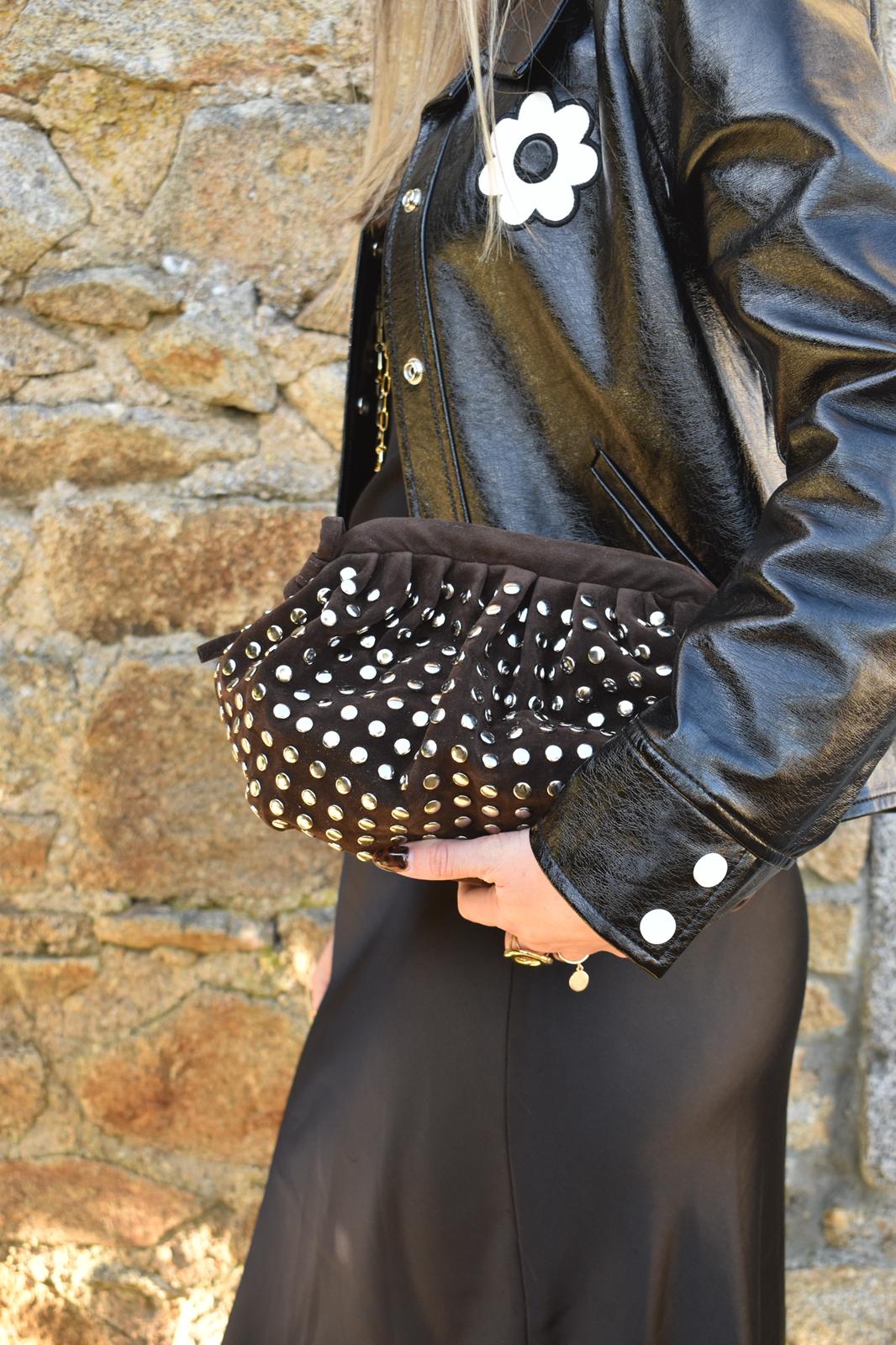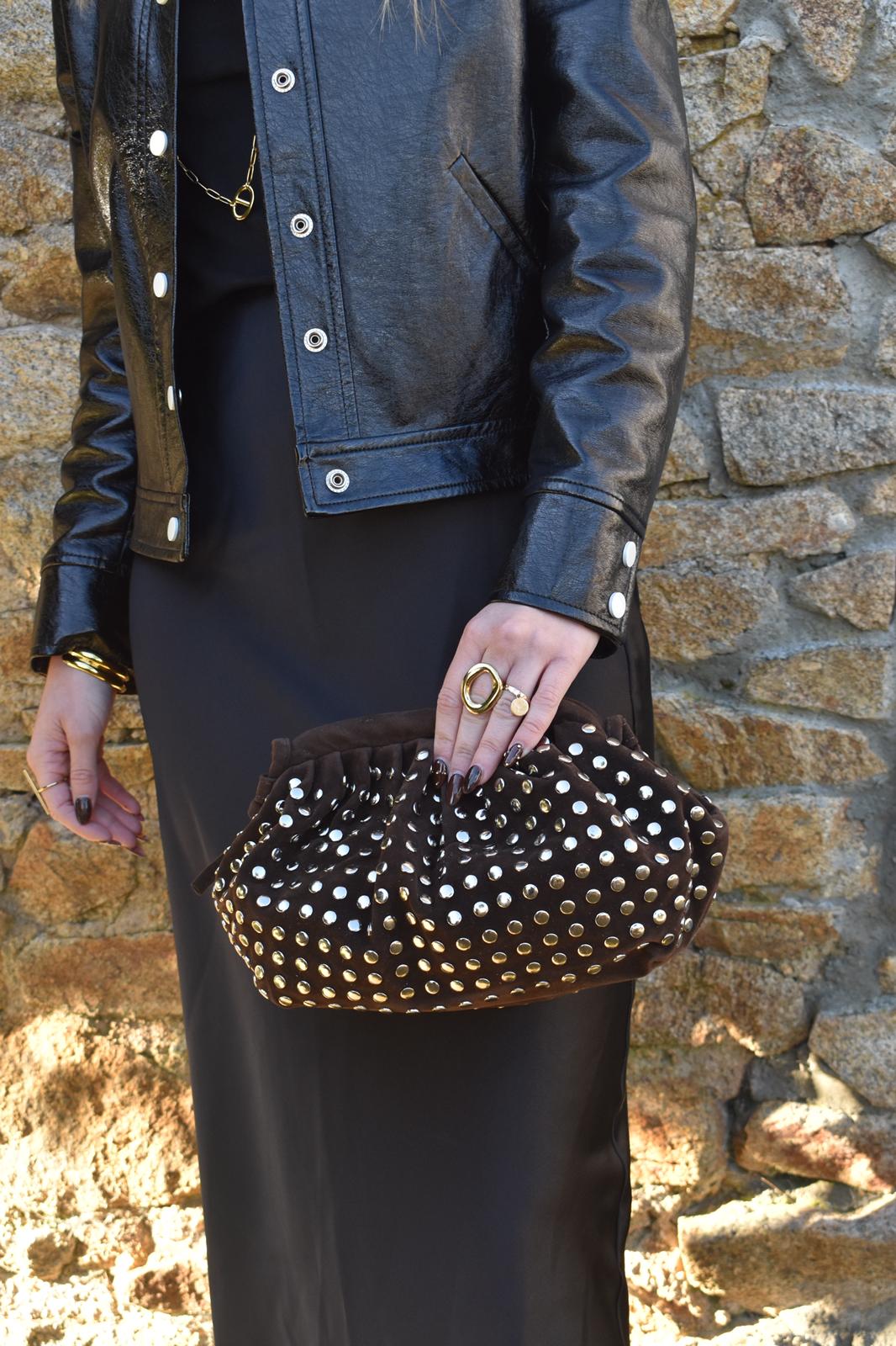 Sac en cuir de vachette avec des clous et une sangle intégrer
